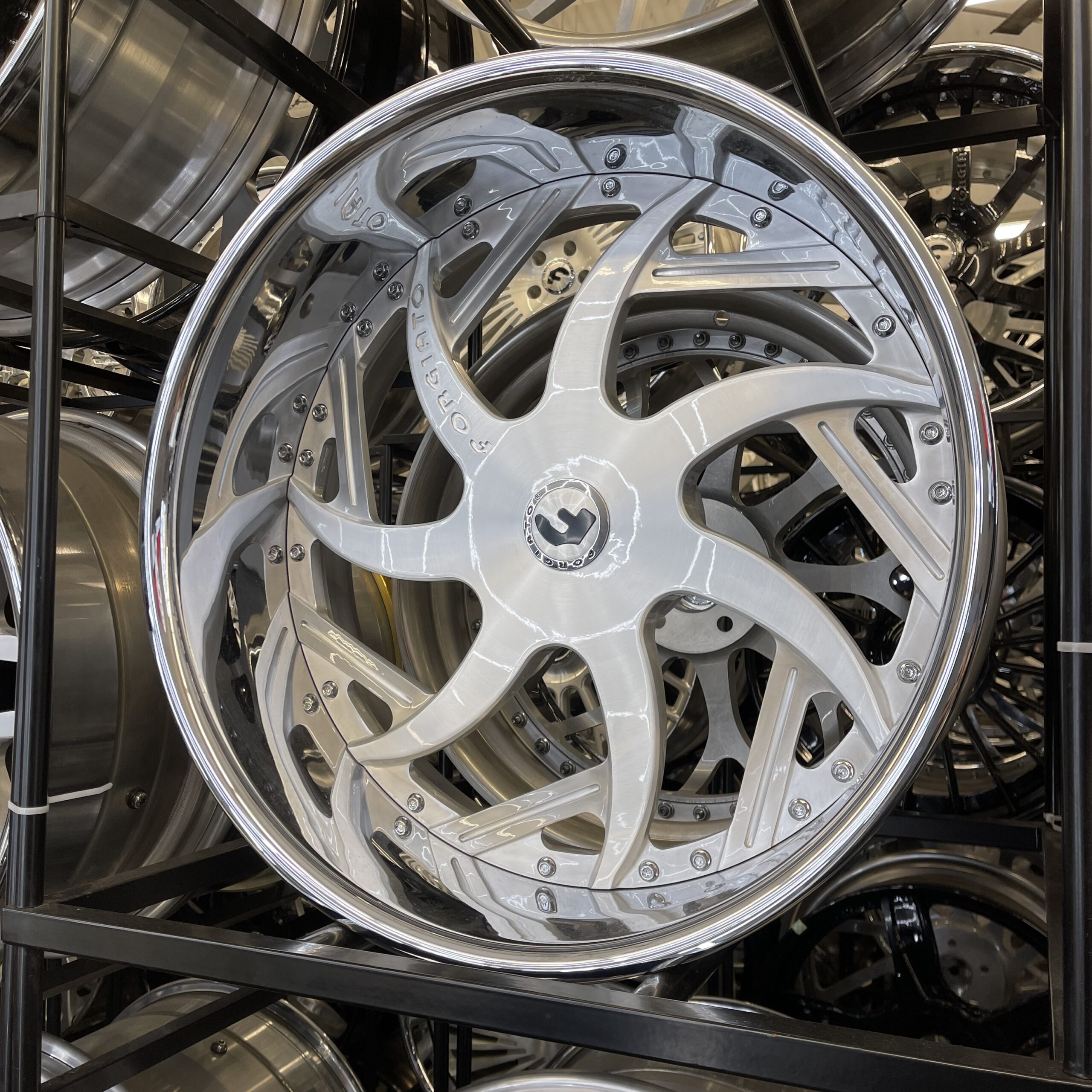 22″ Forgiato Wheels Girare Brushed Silver Chrome Lip G-Body/Old School Fitment – Wheel/Tire Package