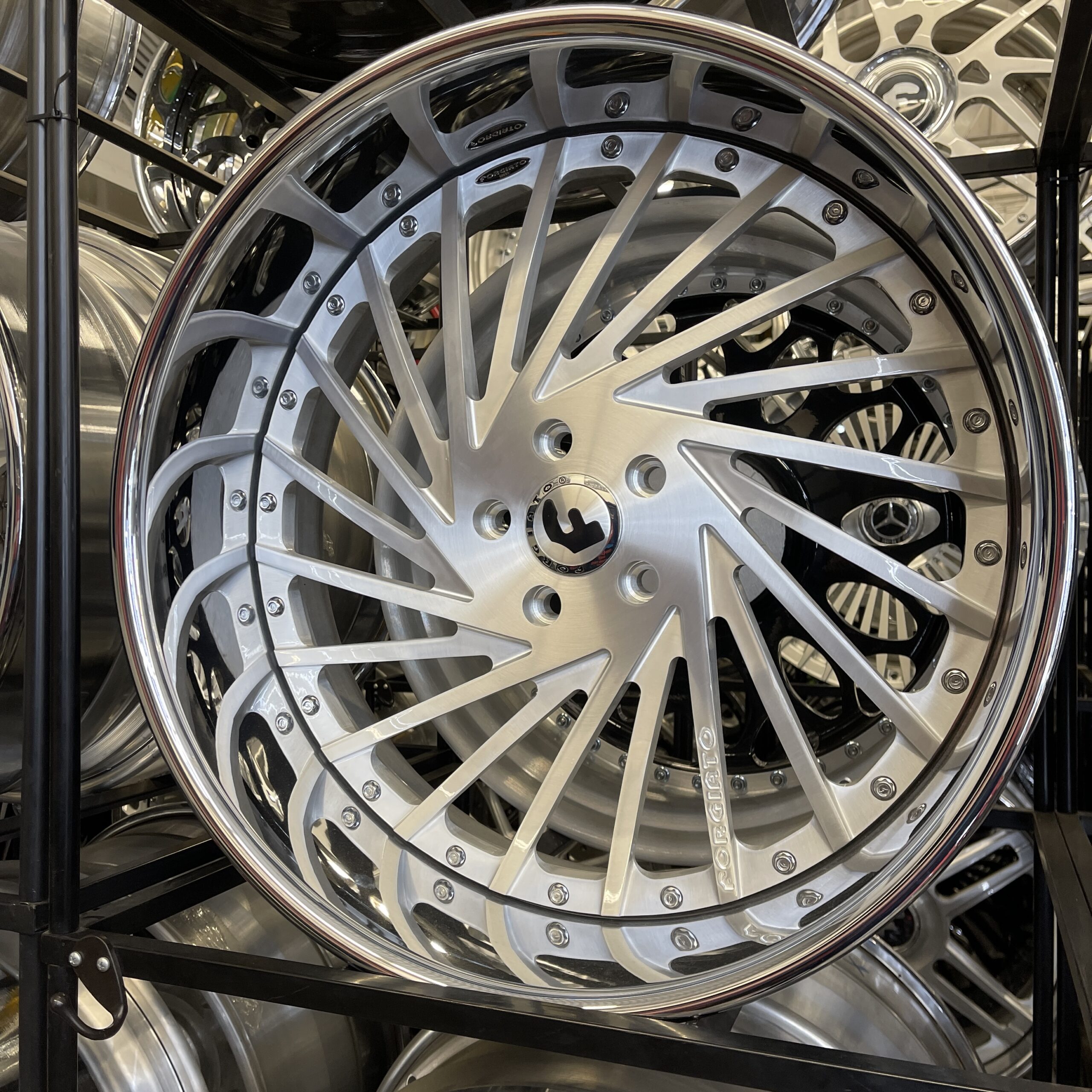 22″ Forgiato Wheels Ventoso Brushed Silver Chrome Lip G-Body/Old School Fitment – Wheel/Tire Package