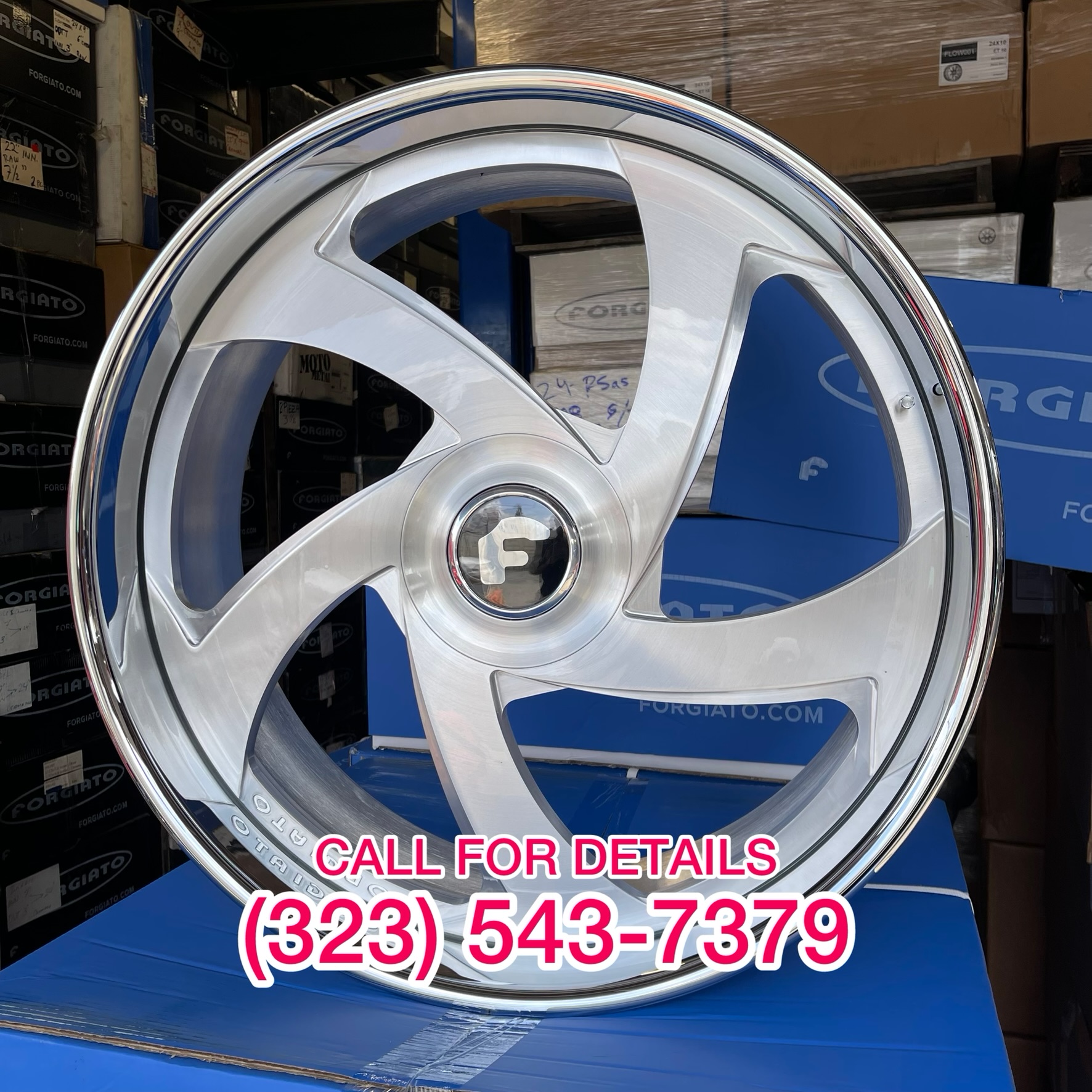 Be the first to review “24″ Forgiato Wheels SR01 Brushed Silver Chrome Lip XL Floater Cap 4 Wheel and Tire Pkg”