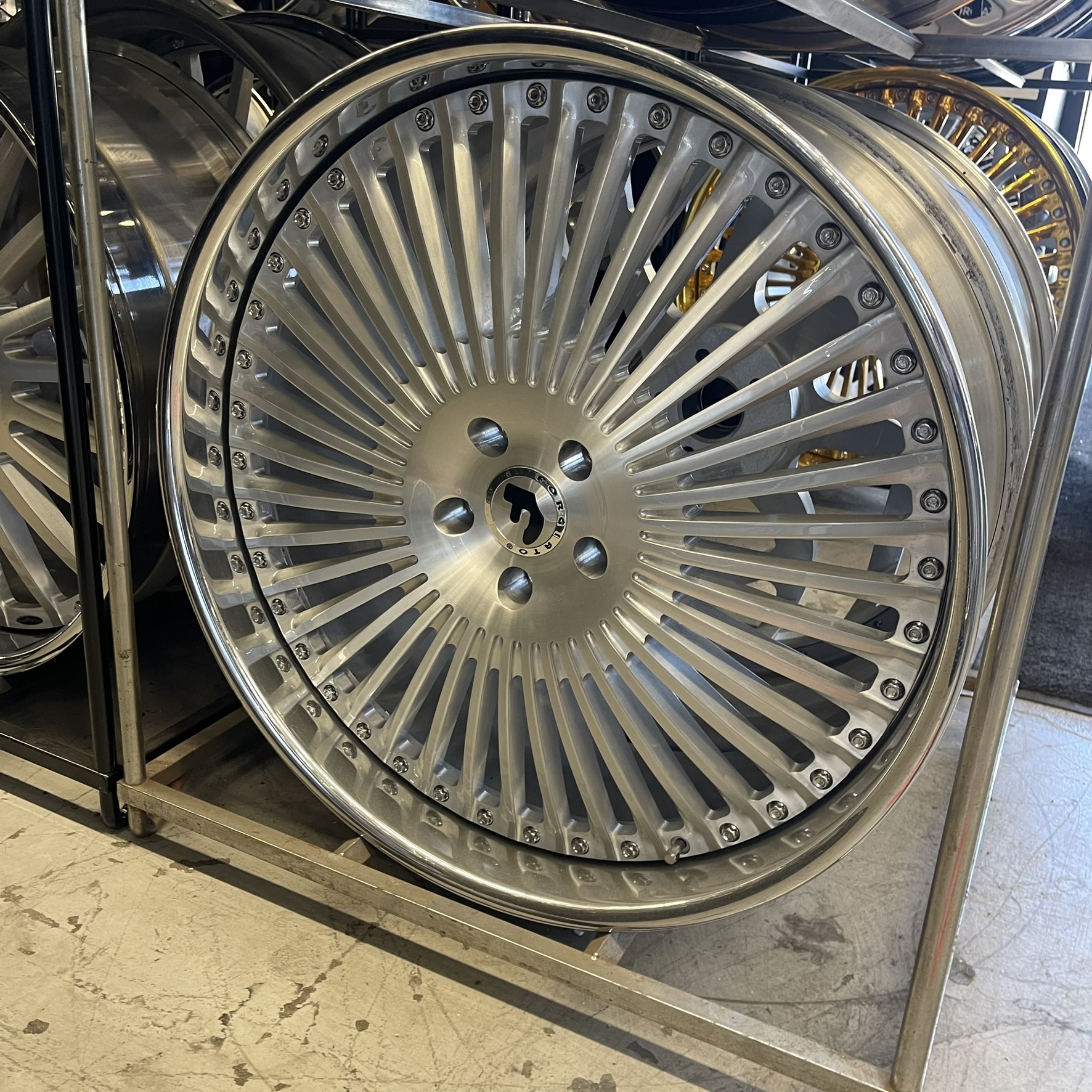 24″ Forgiato Wheels Trimestre Brushed Silver Chrome Lip 4 Wheel and Tire Pkg